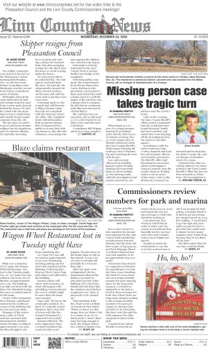 What began as a report of a young teenager missing from Holiday Lakes shortly after 6 p.m. on Sunday evening, Dec. 21, took a tragic turn on Monday afternoon when the Linn County Sheriff’s Office began blocking off roadways east of Pleasanton and searching the area with... [More]